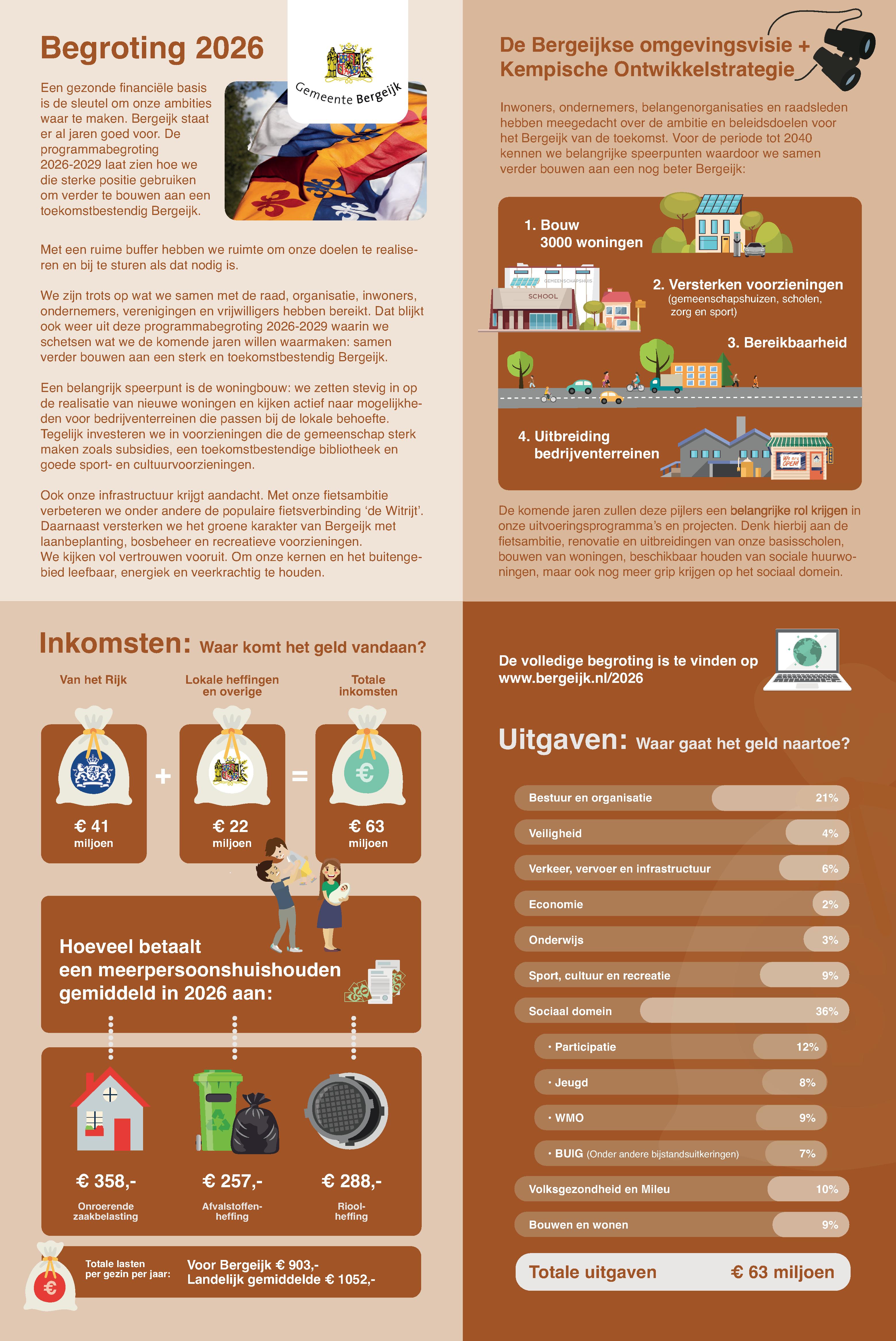 We zijn trots op wat we samen met de raad, organisatie, inwoners, ondernemers, verenigingen en vrijwilligers hebben bereikt. Dat blijkt ook weer uit deze programmabegroting 2026-2029 waarin we schetsen wat we de komende jaren willen waarmaken: samen verder bouwen aan een sterk en toekomstbestendig Bergeijk.