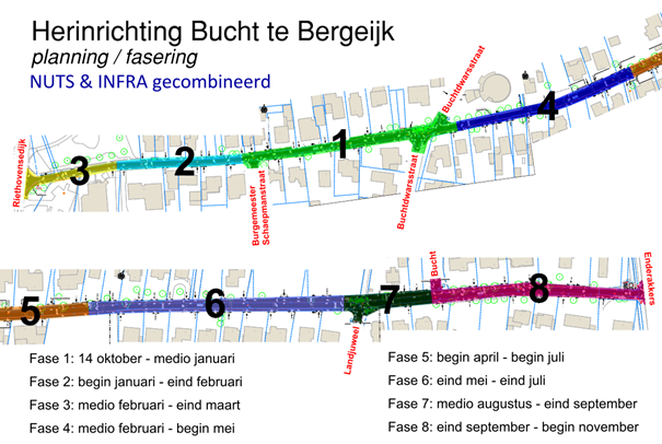 Tekening planning / fasering de Bucht, herinrichting