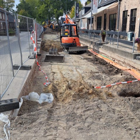 De schop zit al even in de grond, en dat zie je! In het centrumgedeelte (vanaf de aansluiting met de Kapelledries) zijn de werkzaamheden in volle gang. We liggen keurig op schema, al lopen de riolering en verharding een klein beetje achter. Maar geen zorgen: dat trekken we snel recht!